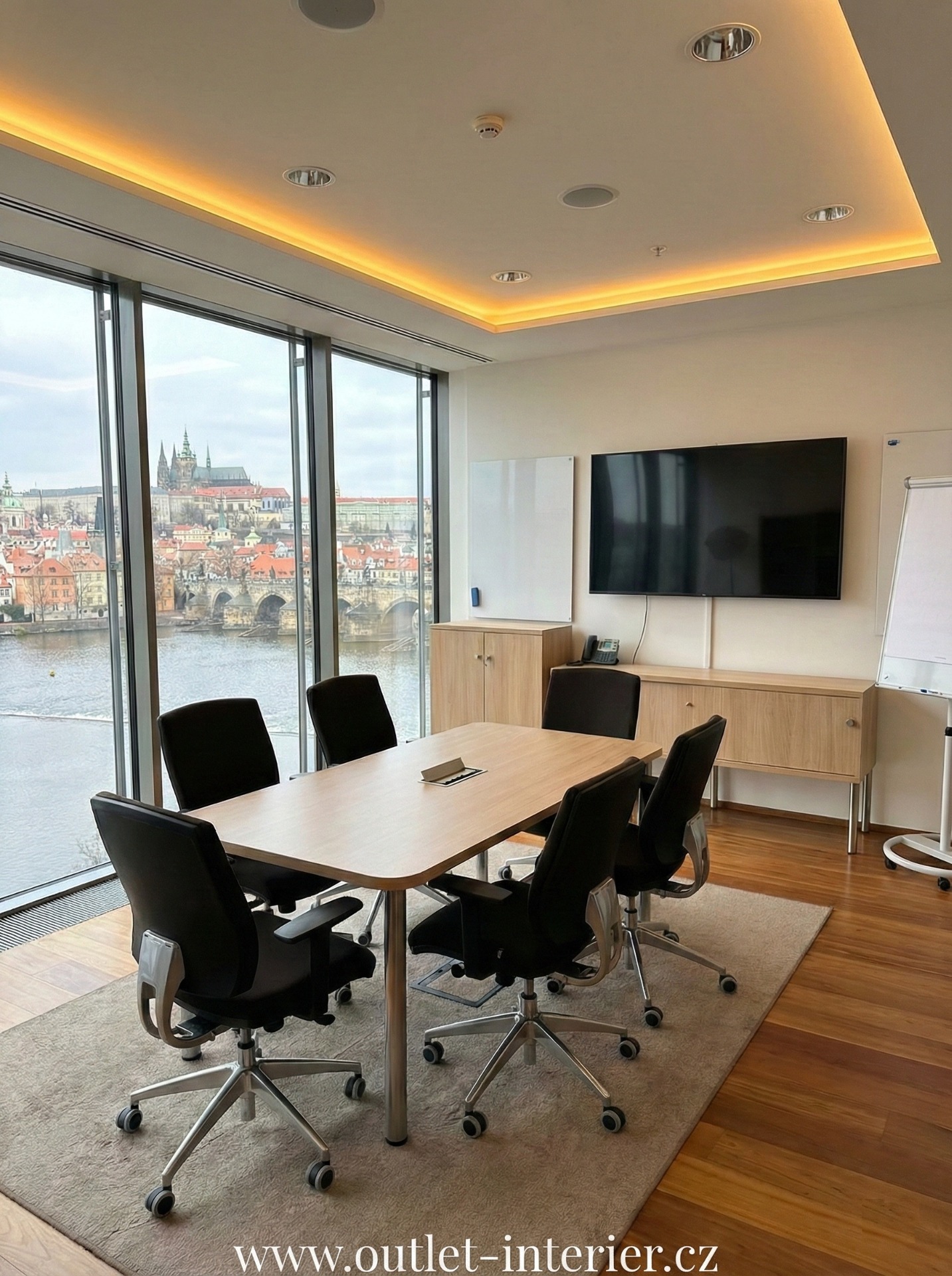 jednací stul s implementovanou zásuvkou + kancelářské židle 6 ks