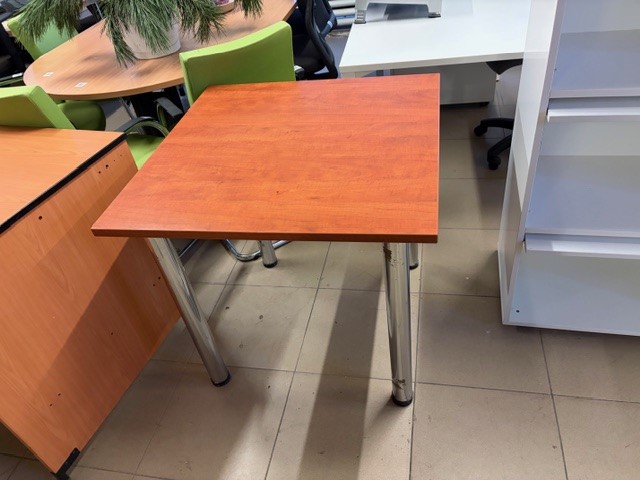 stolek deska 79x79 cm třešeň nohy kovové chrom